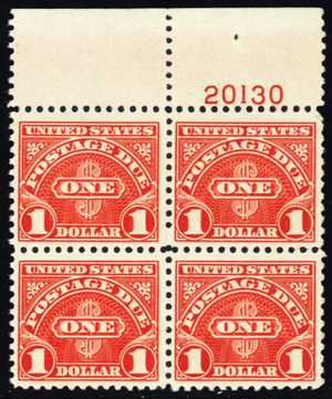 J77, MNH $1 VF Block of Four Postage Due Stamps SCV $260.00 * Stuart Katz