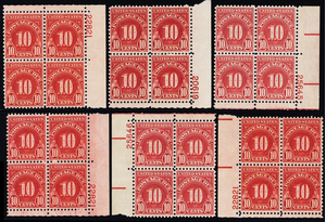 J84, Mint NH 10¢ SIX VF Plate Blocks of Four CV $58.50 - Stuart Katz