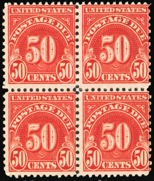 J86, Mint NH 50¢ - Postage Due Block of Four SCV $80.00 -- Stuart Katz
