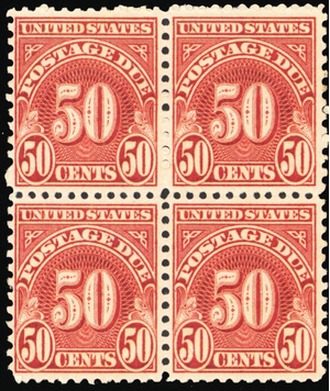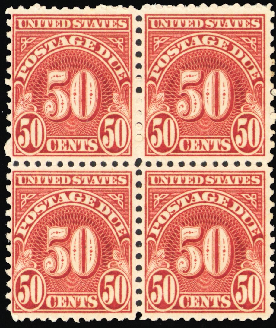 J86, Mint NH 50¢ - Postage Due Block of Four SCV $80.00 - Stuart Katz