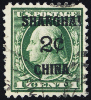 K1, Used VF 2¢ Shanghai Overprint Stamp CV $70 - Stuart Katz