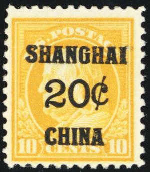 K10, Unused FVF (Regummed) 20¢ Shanghai Overprint Stamp * Stuart Katz