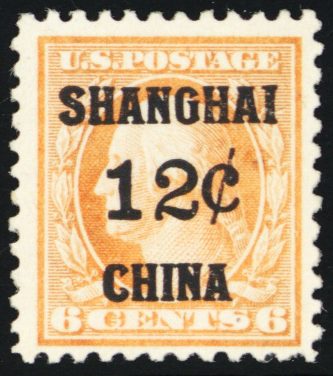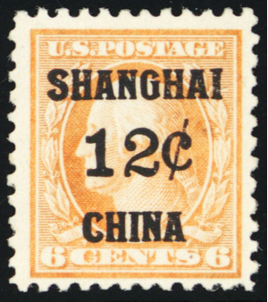 K6, Unused FVF (Regummed) 12¢ Shanghai Overprint Stamp * Stuart Katz