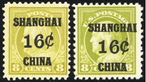 K8 & K8a, Mint FVF NH 16¢ Shanghai Overprint Stamp SCV $320 * Stuart Katz