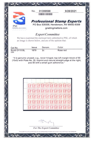 O115, Mint NH 2¢ PL# & Imprint Block of 50 - PSE Cert CV $1465+ - Stuart Katz