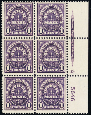 O124, Mint F-VF NH 1¢ RARE Plate Block of Six - Stuart Katz