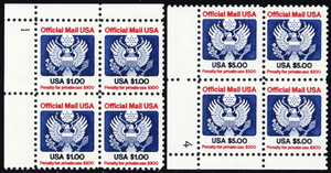 O132-33, Mint VF NH $1 & $5 Plate Blocks Of Official Stamps - Stuart Katz