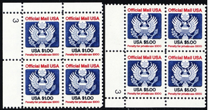 O132-33, Mint VF NH $1 & $5 Plate Blocks Of Official Stamps *** Stuart Katz