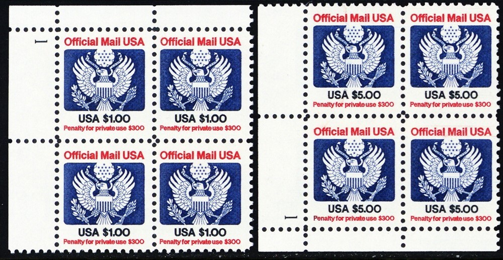 O132-33, Mint VF NH $1 & $5 Plate Blocks Of Official Stamps ** Stuart Katz