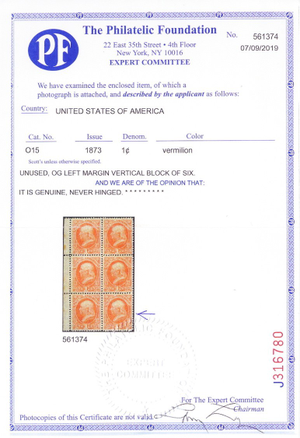No refunds will be made after 60 days after the sale date unless extra time is granted. Due to the high cost of obtaining certificates we will only refund the cost of the stamp and not the cost of the certificate. For U.S. stamps only certificates from either APS, PSE or from the Philatelic Foundation are accepted, however "graded" certificates or "encased" items are not accepted.