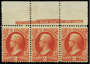 O16, Mint OG NH 2¢ Imprint Strip of Three SCV $480 - Stuart Katz