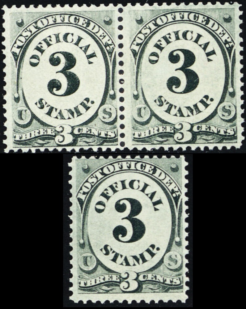 O49, Mint OG NH Three 3¢ Official Stamps SCV $75.00 - Stuart Katz