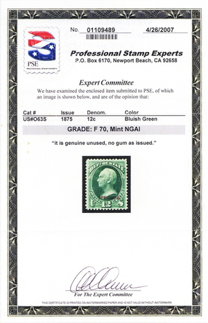 No refunds will be made after 60 days after the sale date unless extra time is granted. Due to the high cost of obtaining certificates we will only refund the cost of the stamp and not the cost of the certificate. For U.S. stamps only certificates from either APS, PSE or from the Philatelic Foundation are accepted, however "graded" certificates or "encased" items are not accepted.