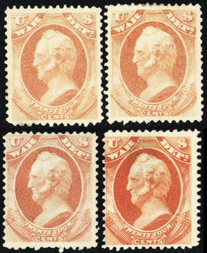 O91, Unused No Gum 24¢ Four Official Stamps SCV $160.00 * Stuart Katz