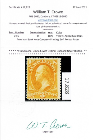 Due to the high cost of obtaining certificates we will only refund the cost of the stamp and not the cost of the certificate for stamps that sell for less than $250 that come back with a negative certificate. Stamps that sell for above $250 will receive a full refund for both the price of the stamp and cost of the certificate if it should come back not as described. For U.S. stamps only certificates from either APS, PSE or from the Philatelic Foundation are accepted, however "graded" certificates or "encased" items are not accepted.