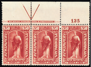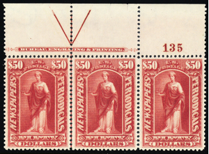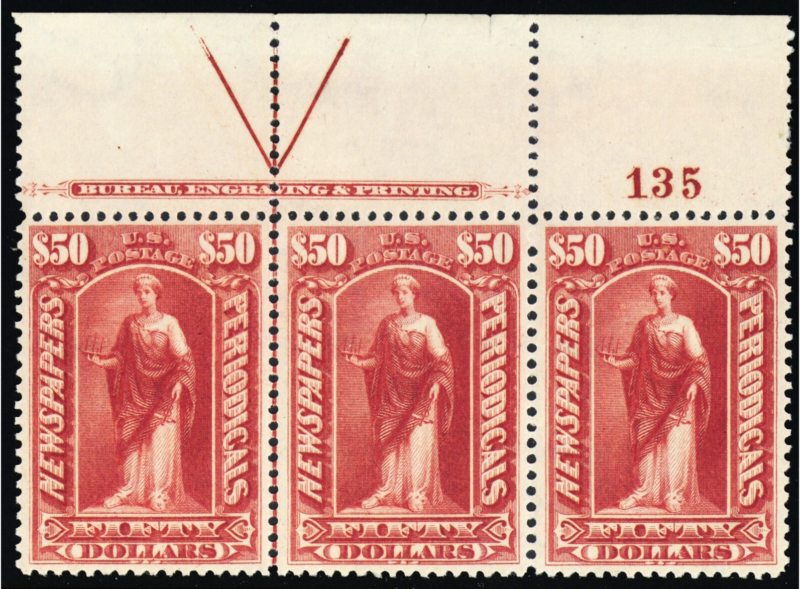 PR124, Mint XF NH - $50 PL# & Imprint Strip of Three * Stuart Katz