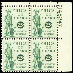 PS12, Mint XF NH 25¢ Postal Savings Plate Block * Stuart Katz