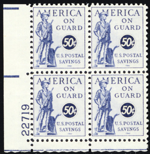 PS13, MNH FVF NH 50¢ Plate Block Postal Savings CV $50 -- Stuart Katz