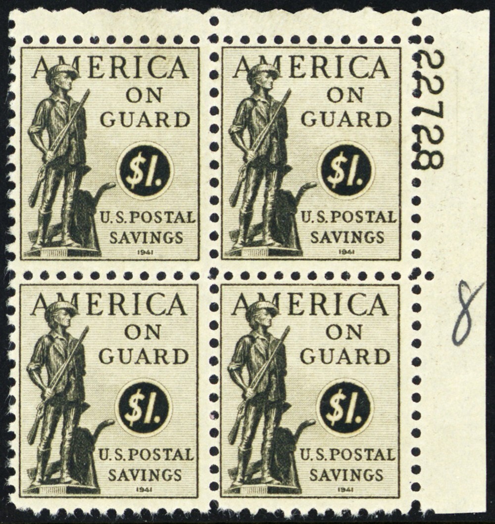 PS14, Mint NH $1 Postal Savings Plate Block CV $75 * Stuart Katz