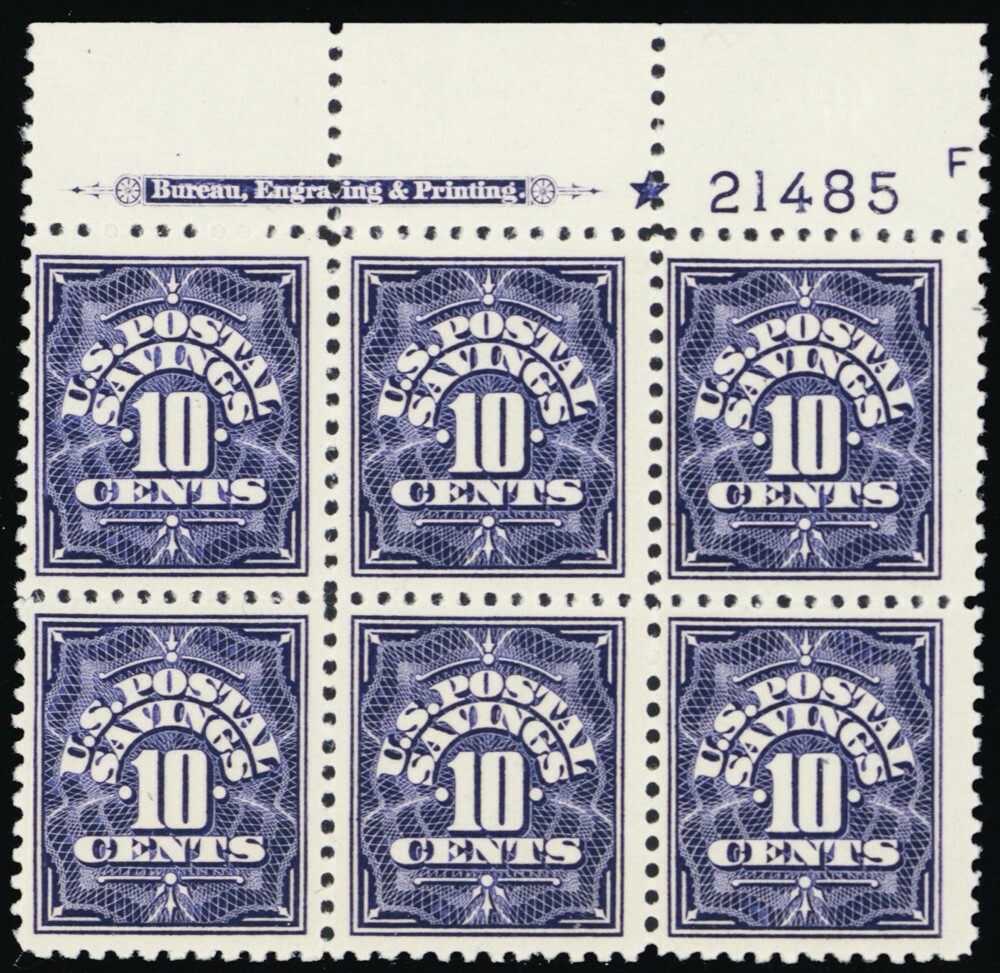 PS6 Mint 10¢ F/VF NH Top Plate Block of Six Stamps Scarce! Cat $150. Stuart Katz