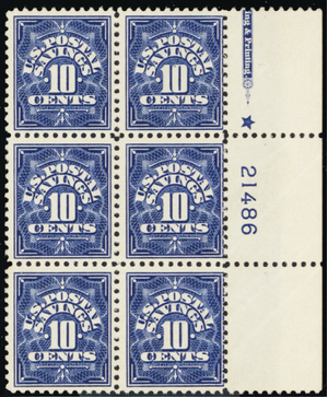 PS6 Mint 10¢ VF NH Plate Block of Six Stamps Scarce! Cat $150.00 - Stuart Katz