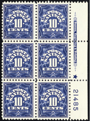 PS6, Mint VF LH Well Centered Plate Block of Six - Stuart Katz