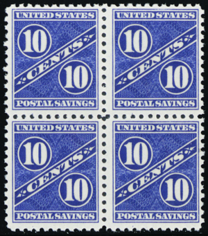 PS7, Mint F/VF NH 10¢ Postal Savings Block SCV $128+ * Stuart Katz