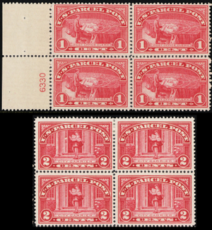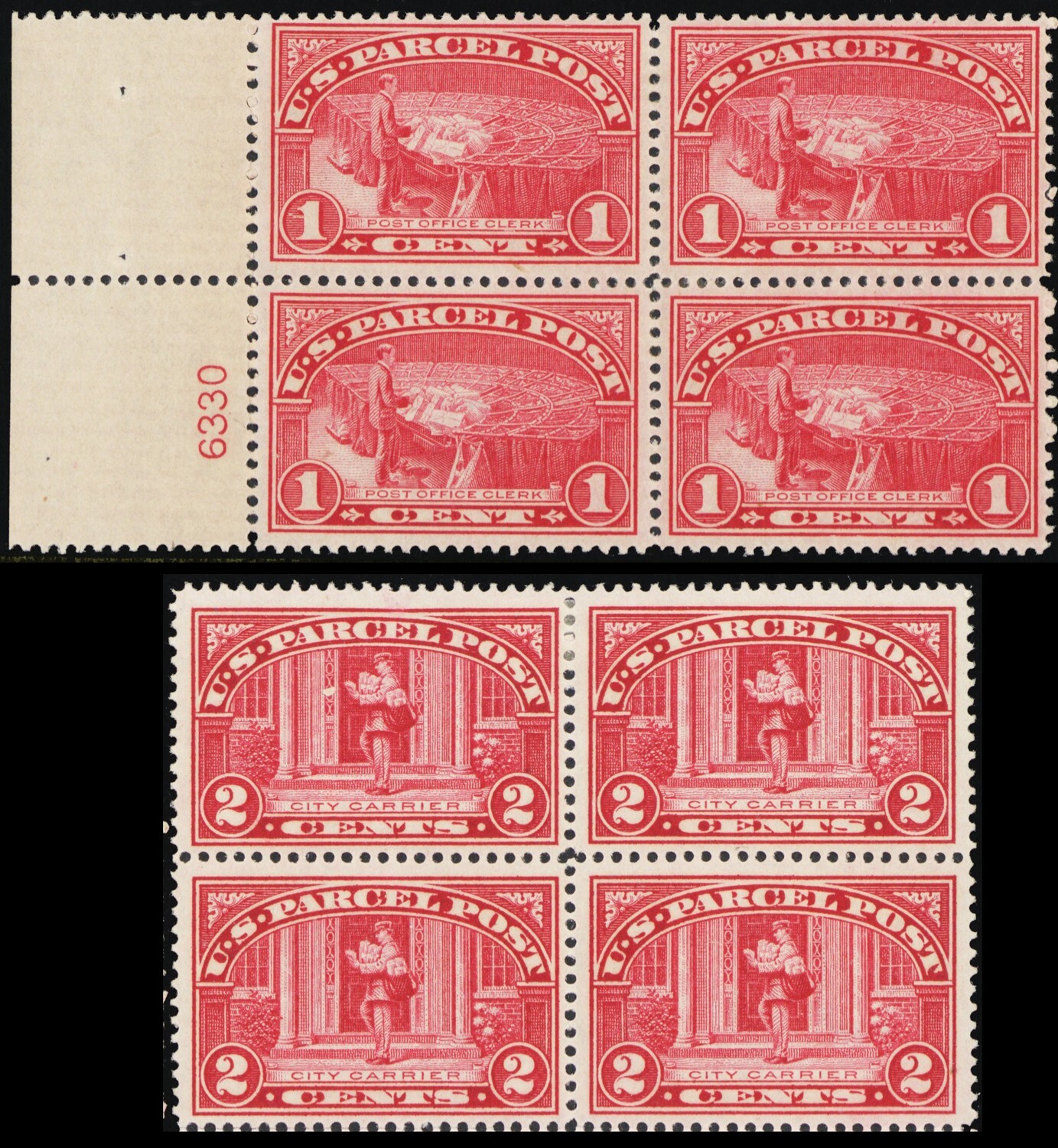 Q1-2, Mint F-VF HR 1-2¢ - Blocks of Four Parcel Post SCV $42 - Stuart Katz