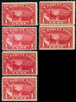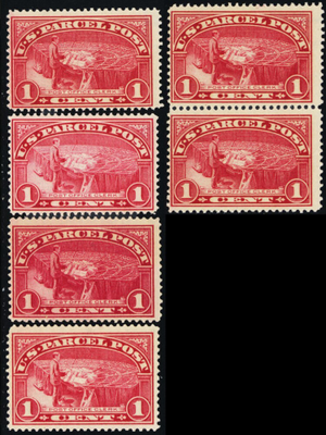 Q1, Mint NH 1¢ SIX Parcel Post Stamps SCV $72.00 - Stuart Katz