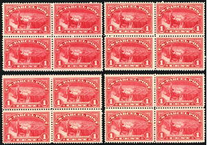Q1, Mint NH F-VF 1¢ Parcel Post - 4 Blocks SCV $192 * Stuart Katz