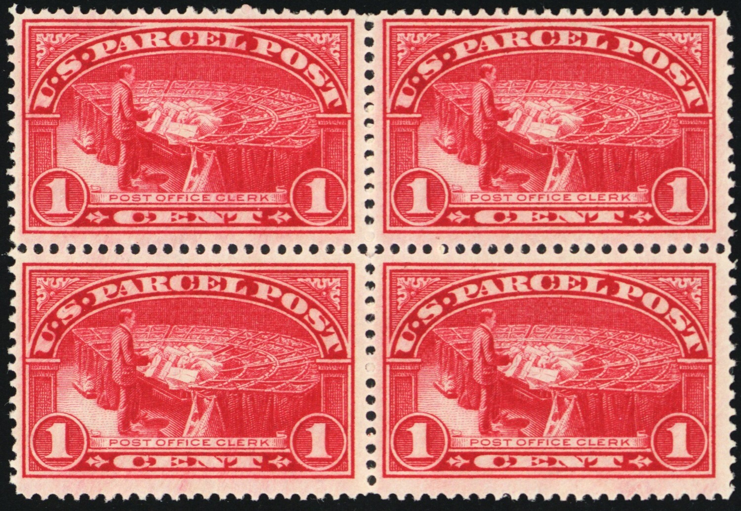 Q1, Mint NH FVF 1¢ Parcel Post - Block of Four SCV $48 - Stuart Katz