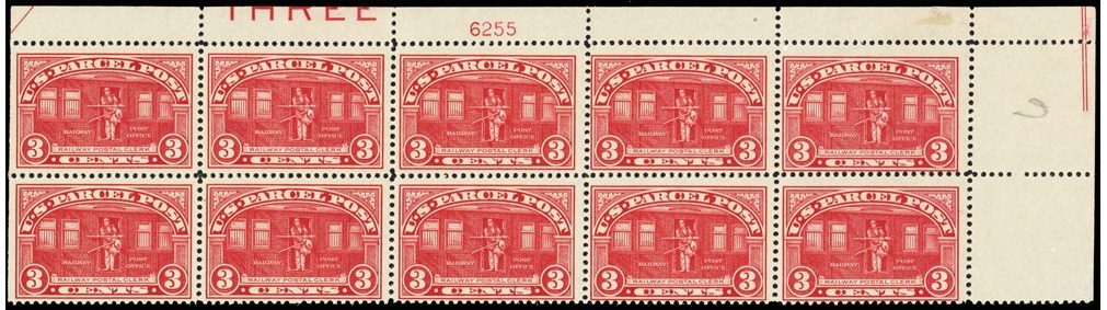 Q3, MNH Top Plate No. 6255 and Imprint Block of Ten Cat $479.00 - Stuart Katz