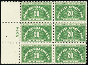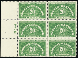 QE3, Mint VF/XF NH Plate Block of Six Special Handling Stamps -- Stuart Katz