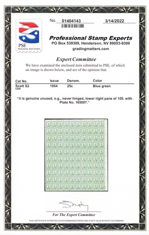 S2, MNH 25¢ Savings Stamp Complete Sheet of 100 PSE SCV $755+ - Stuart Katz