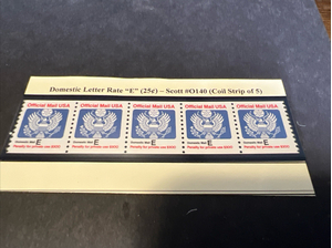 Scott#O140-Coil Strip of 5 1988 Official Mail 15c MNH-US. Shipped with USPS Ground Advantage.
