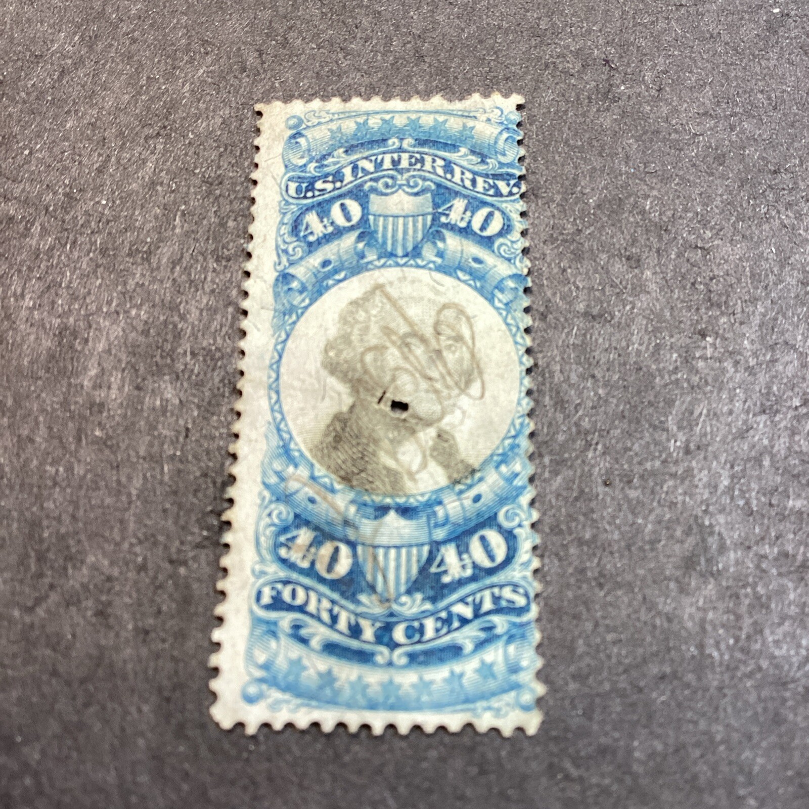 SCOTT #R114 40-CENT BLUE REVENUE STAMP-PEN CANCEL-USED-US. Shipped with USPS Ground Advantage.