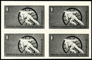 TD100, XF OG NH BLOCK/4 NEBRASKA TESTING STAMP - BLACK