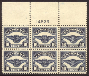 Scott #C5: 1923 16c Dark Blue Centering & Condition: Mint. Fresh. VF/XF and CHOICE Plate Block. Reverse (Gum Side): Original gum. Never Hinged. Faults / Imperfections: None The item pictured is the actual item you are purchasing, unless otherwise noted. I also offer an interest-free layaway plan. Ask me about it!" All items will be mailed a day or two after payment is received. ![]() ![]() ![]() --------------------------------------------------------------------------------