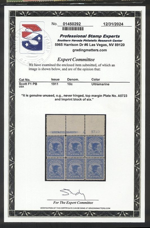 Scott #F1: 1911 10c Registration Stamp Centering & Condition: Mint. Fresh. Beautiful color. Fine-Very Fine and SCARCE Reverse (Gum Side): Original gum. Never Hinged. Faults / Imperfections: None The item pictured is the actual item you are purchasing, unless otherwise noted. I also offer an interest-free layaway plan. Ask me about it!" All items will be mailed a day or two after payment is received. ![]() ![]() ![]() --------------------------------------------------------------------------------