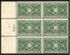 Scott #JQ4: 1913 10c Parcel Post Postage Due Centering & Condition: Mint. Fresh. Fine and RARE Plate Block (catalog value $11,500). Reverse (Gum Side): Original gum. Never Hinged. Faults / Imperfections: Perfs rejoined / strengthened in the selvage The item pictured is the actual item you are purchasing, unless otherwise noted. I also offer an interest-free layaway plan. Ask me about it!" All items will be mailed a day or two after payment is received. -------------------------------------------------------------------------------- Please click any of the following to read: |