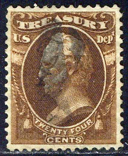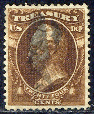 Scott #O80: 24c Treasury Dept Official Centering & Condition: Used. Rich color. Extremely Fine and CHOICE! Reverse (Gum Side): N/A Faults / Imperfections: None The item pictured is the actual item you are purchasing, unless otherwise noted. I also offer an interest-free layaway plan. Ask me about it!" All items purchased will be mailed a day or two after payment is received. -------------------------------------------------------------------------------- Please click any of the following to read: | |