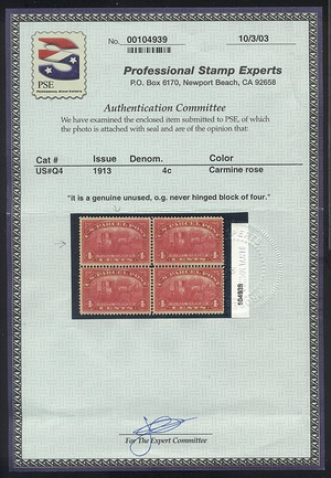 Scott #Q4: 1913 4c Parcel Post Centering & Condition: Mint. Fresh. Rich color. XF/SUP and CHOICE JUMBO! Reverse (Gum Side): Original gum. Never Hinged. Faults / Imperfections: None The item pictured is the actual item you are purchasing, unless otherwise noted. I also offer an interest-free layaway plan. Ask me about it!" All items purchased will be mailed a day or two after payment is received. --------------------------------------------------------------------------------