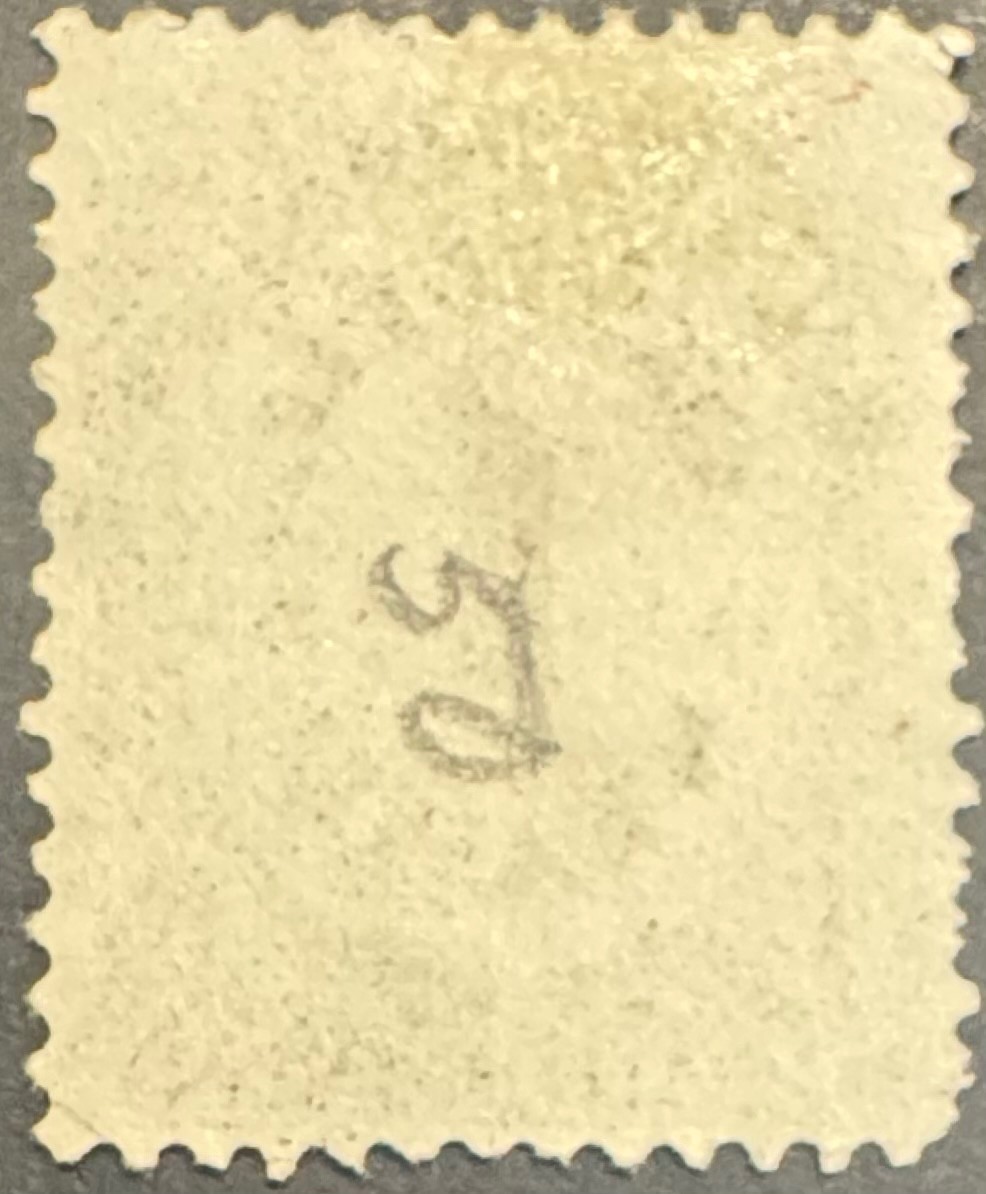 The back shows no gum (normal for used Officials) and a small pencil notation.