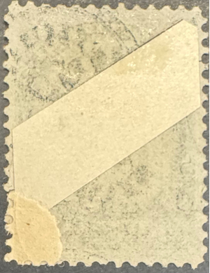 The stamp has a repaired tear. A piece of tape on the back is holding the tear together. Additional toning, hinge remnants, and perf faults are also present. Because of this heavy fault, the stamp is being sold strictly as a spacefiller.