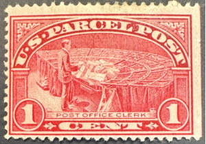 US Scott Q1 – 1¢ Parcel Post “Post Office Clerk” (1913).