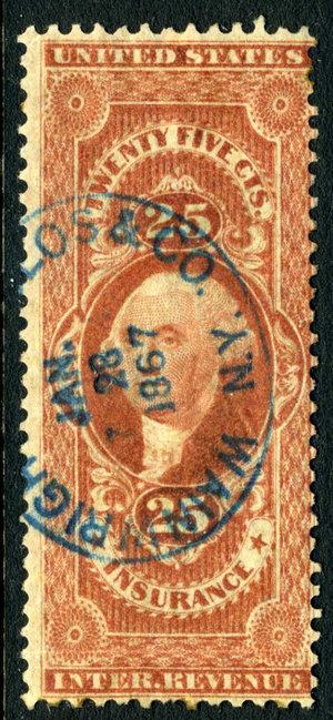 USA 1871 Revenue 25¢ Insurance Scott #R47c VFU R931