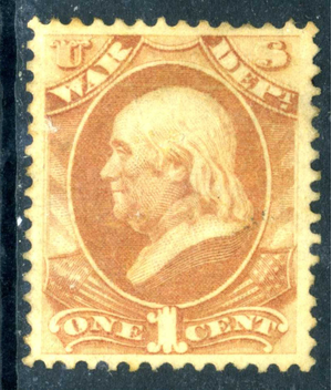 USA 1873 Official 1¢ Dept of War Rose Hard Paper Scott O83 Mint E294