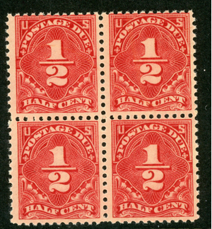 USA 1925 Postage Due ½¢ Dull Red Perf 11 Block Of Four Scott #J68 MNH V654