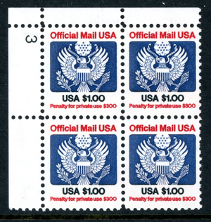 USA 1983 Official $1.00 Scott # O132 Inscription Number Block MNH L785