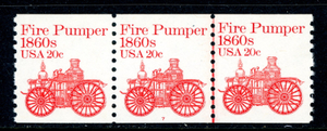 USA Transportation Coil Fire Pumper Strip of 3 Plate #7 Scott #1908 MNH O202